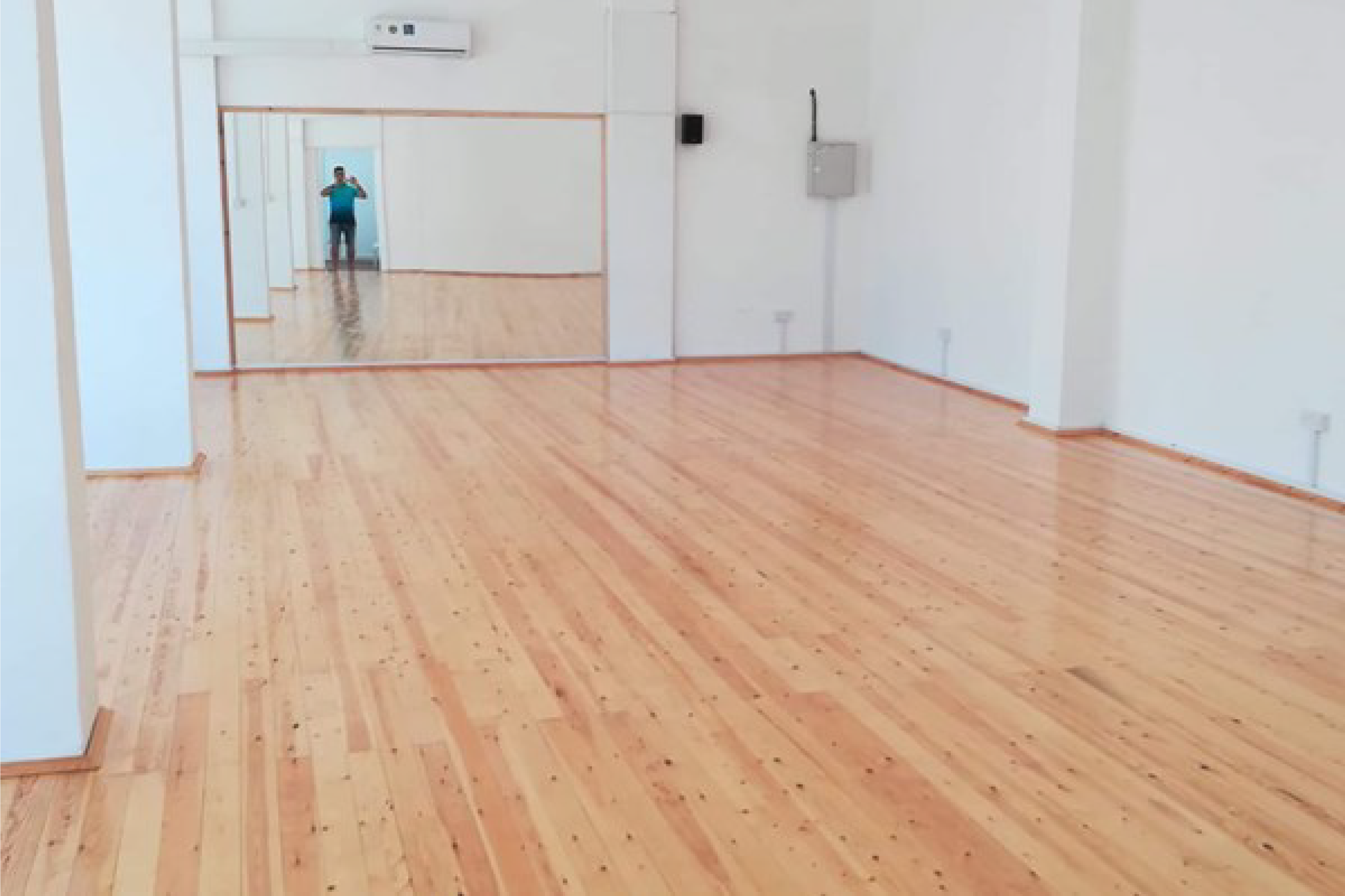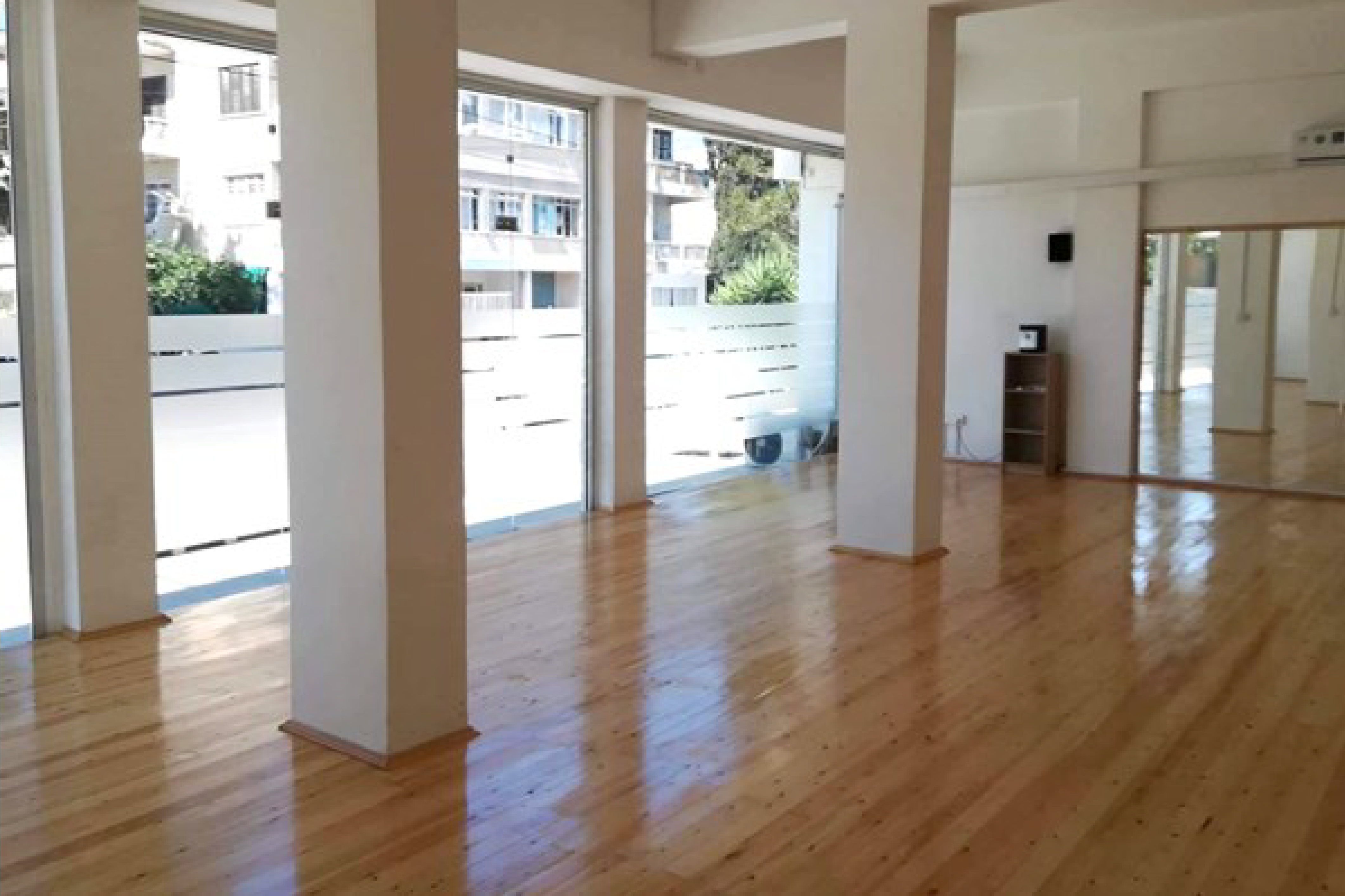 Dance Works is situated in a quiet residential area of Ayios Andreas, offering ample parking. The studio measuring 130 sq metres is light with a specially constructed sprung floor overlaid with a professional “Harlequin” linoleum dance floor. It is fully air conditioned and heated.